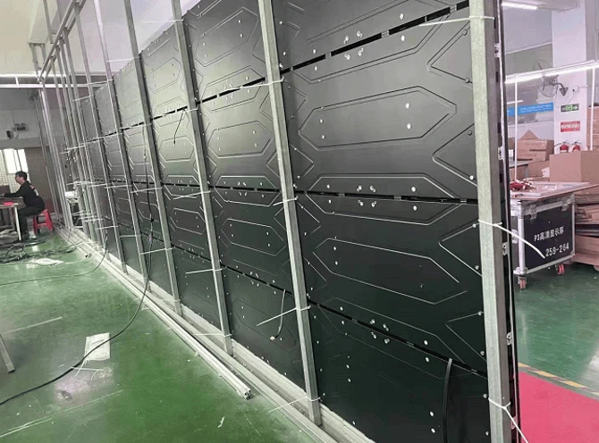 Install the LED panels by attaching them to the display structure. Ensuring proper alignment and tight connection between panels and cabinets for achieving a seamless display surface.