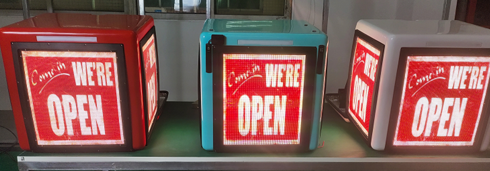IP 65. La scatola LED per la consegna di cibo è costruita secondo gli standard per esterni: antipolvere, impermeabile e affidabile anche in condizioni di pioggia. Resistente agli ambienti esterni difficili. Le piastre in PC proteggono i moduli LED da urti, acqua, umidità e polvere.