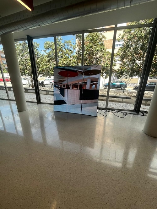 Amazing visual indoor poster screen in Spani,the product is supported by a bracket and can be assembled as a rental screen,the effect is very good!