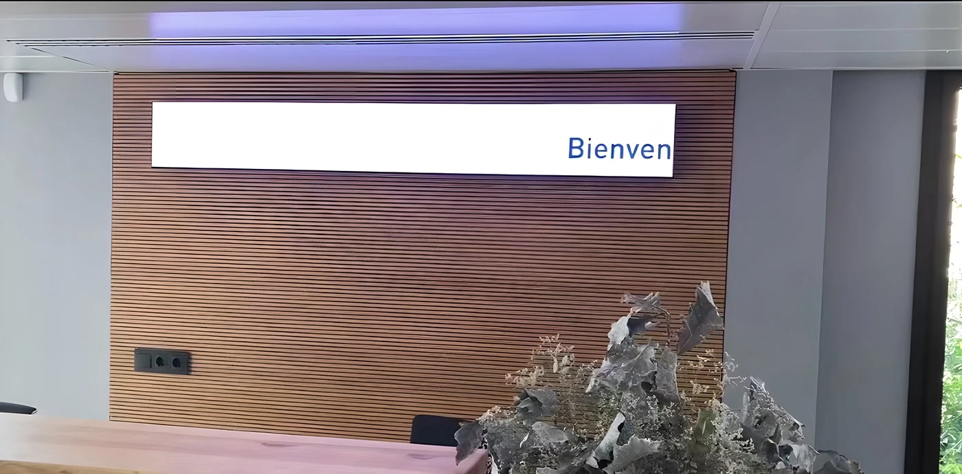 The project includes two different sizes of our indoor P1.9 FA3 series LED display. One is 2m x 0.25m, the other is 1.5m x 0.5m. Both two have excellent resolution. And our indoor LED display FA3 series has many advantages, including slim and lightweight of 5.5kgs/panel, fully front access, die-casting aluminum cabinet, etc.