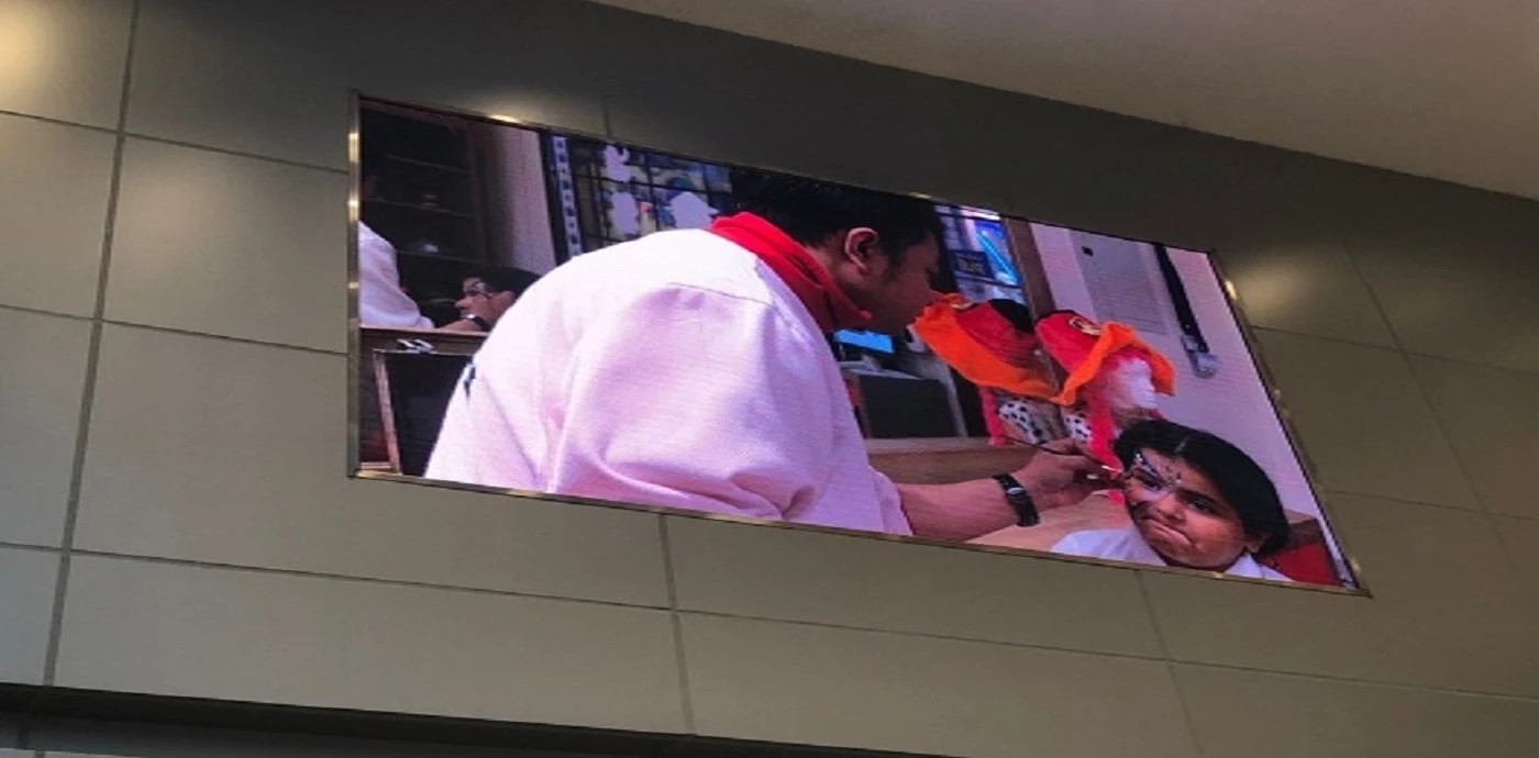 This SP1 series P2.5 LED Display was our indoor small-pitch LED screen. The cabinet was die-cast aluminum, and the cabinet was very light and thin. The screen was embedded in the wall for installation, and it was installed in a shopping mall for 4K high-definition advertisement.
