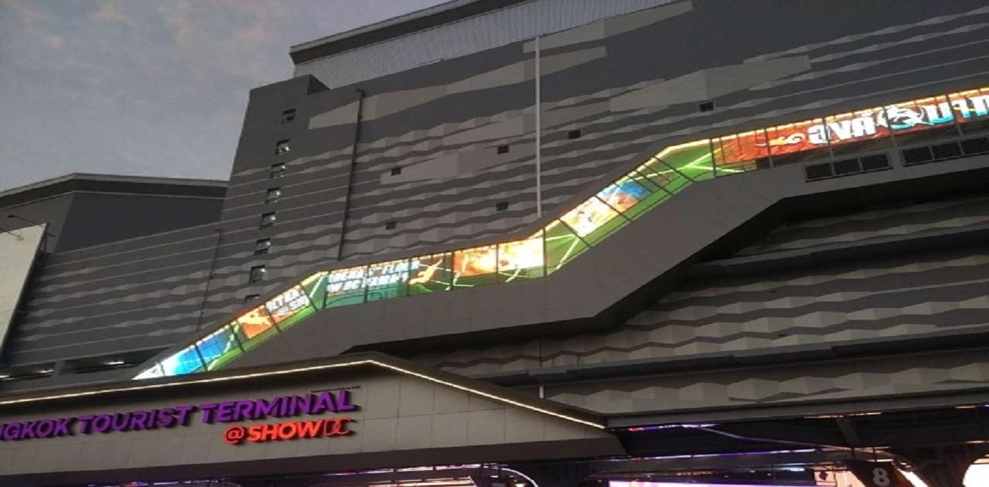 This was our outdoor project in Thailand. The OA2 Series P8 LED Display was customized as the ladder shape. The design of the cabinet not only retained the expected ladder shape but also realized seamless connection.