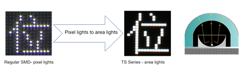 Compared with the traditional SMD panel, TS series changes from pixel light to surface light, which makes the picture light more uniform and soft. Ensure pixel continuity without visual gaps.