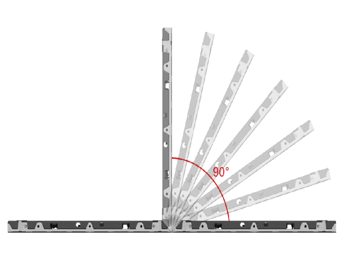 0°-90° can be customized, and the display screen can perfectly fit any architectural curvature, creating a seamless, integrated, wrap-around visual experience.
