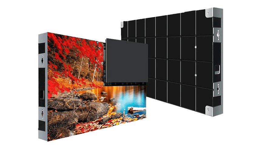 The cabinet can be accessed from front side for maintenance and installation. All receiving cards, power supplies, etc can be serviced from the front side.