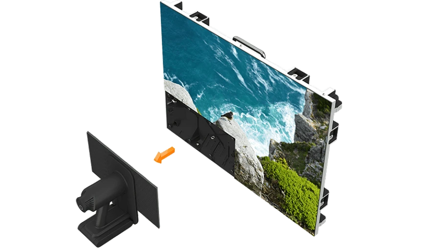 The cabinet, module, power supply and other components are with fully front access service, therefore super easy disassembly of the fine pitch LED screen is allowed.The cabinet can be accessed from front side for maintenance and installation.