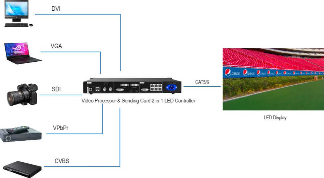 An LED display screen works by using light-emitting diodes (LEDs) as individual pixels to create visual content. Each LED emits light of a specific color (red, green, or blue) when an electric current is applied, and by controlling the brightness and combination of these primary colors, the display can produce a wide spectrum of hues and images.The panels are connected to a control system that receives video, image, or text data, processes it, and sends signals to each LED to adjust its brightness and color in real time. This allows the display to show live events, instant replays, scores, advertisements, and other dynamic content, enhancing the spectator experience at major sporting events such as FIFA matches, NBA games, and Olympic competitions.