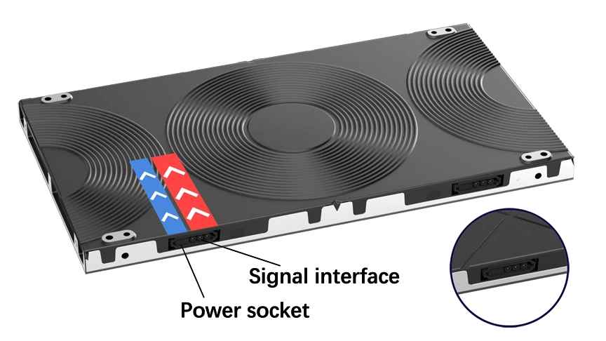 O revestimento traseiro de alumínio dissipa melhor o calor, o design sem ventilador pode reduzir o ruído ressonante causado pelo ventilador e pelo ar condicionado. Também reduz o consumo de eletricidade causado pelo ventilador extra.