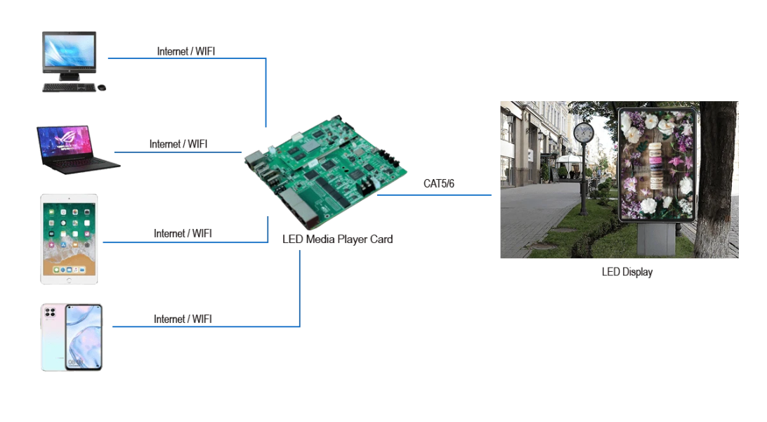 Sistemimiz birden fazla formatı ve dosyayı destekler: AVI, JPEG, MPEG, MOV, MP4, GIF, FLV. Parlak LED afişlerimiz mükemmel çözünürlük sağlamak için küçük bir piksel aralığına sahiptir. Yüksek kaliteli tam renkli videolar, fotoğraflar, metinler vb. oynatın. Ayrıca ilginç ek içerikleri de görüntüleyebilirsiniz: hava durumu tahminleri, yerel haberler vb.